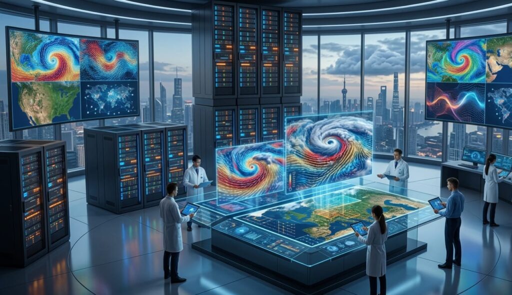यह तकनीक न केवल चक्रवात के रास्तों और मानसून की वर्षा के पूर्वानुमान को बेहतर बनाती है, बल्कि अत्यधिक स्थानीय स्तर पर मौसम की सटीक जानकारी देने में भी सक्षम है। राष्ट्रीय मध्यम अवधि मौसम पूर्वानुमान केंद्र (NCMRWF) अपने शक्तिशाली ‘अरुणिका’ सुपरकंप्यूटर पर वैश्विक एआई फाउंडेशन मॉडलों को एकीकृत कर रहा है, जिससे भारी वर्षा और लू जैसी चरम घटनाओं की ब्लॉक-स्तरीय भविष्यवाणी संभव हो सकेगी।