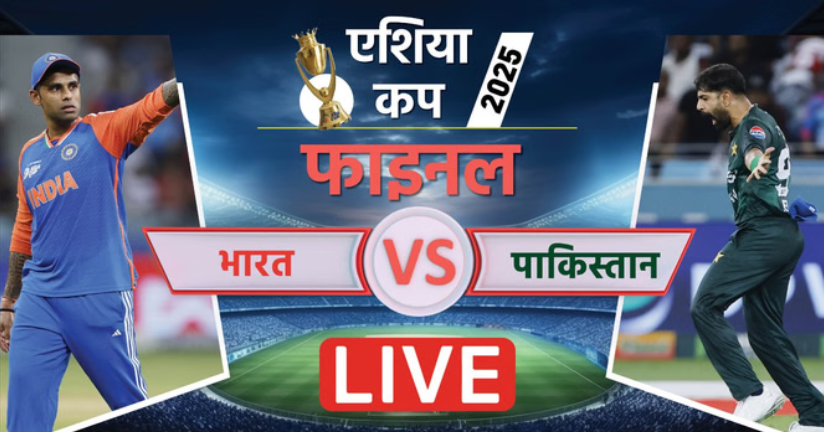 आज एशिया कप 2025 के फाइनल में भारत और पाकिस्तान के बीच जबरदस्त मुकाबला खेला जा रहा है। टूर्नामेंट में अब तक दोनों बार पाकिस्तान को हराकर भारतीय टीम ने शानदार प्रदर्शन किया है। आज की जीत के साथ भारत पाकिस्तान के खिलाफ जीत की हैट्रिक लगाकर ट्रॉफी पर कब्जा करना चाहता है।