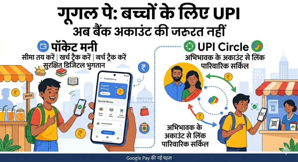 कैलिफोर्निया/नई दिल्ली: दुनिया के सबसे लोकप्रिय डिजिटल भुगतान ऐप गूगल पे (Google Pay) ने भारतीय बाजार के लिए अपनी सबसे क्रांतिकारी तकनीक पेश कर दी है। गूगल ने ‘UPI Circle’ और ‘Pocket Money’ जैसे फीचर्स लॉन्च किए हैं, जो उन करोड़ों भारतीयों के लिए गेम-चेंजर साबित होंगे जिनके पास अपना बैंक खाता नहीं है या जो तकनीक के साथ सहज नहीं हैं।