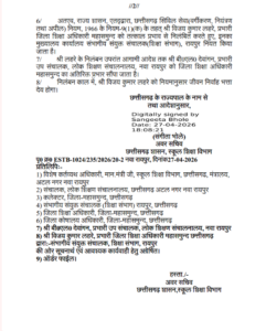 नवा रायपुर: छत्तीसगढ़ शासन के स्कूल शिक्षा विभाग ने बड़ी कार्रवाई करते हुए महासमुंद जिले के प्रभारी जिला शिक्षा अधिकारी (DEO) श्री विजय कुमार लहरे को तत्काल प्रभाव से निलंबित कर दिया है। उन पर अर्धवार्षिक परीक्षा के प्रश्न पत्र में धार्मिक भावनाओं को ठेस पहुँचाने वाला प्रश्न पूछने, न्यायिक आदेशों की अवहेलना करने और विभागीय लेखाओं में गंभीर अनियमितता बरतने के गंभीर आरोप लगे हैं।