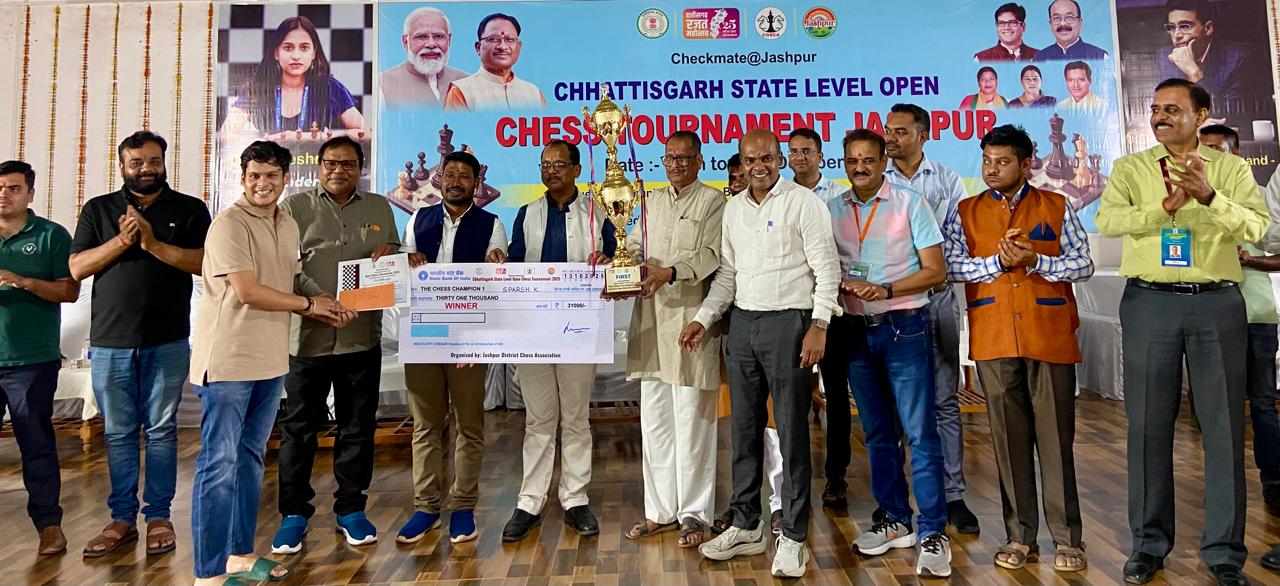 टूर्नामेंट में राजनांदगांव के स्पर्श खंडेलवाल ने चैंपियन का खिताब जीता। उन्हें 31 हजार रुपये की पुरस्कार राशि और ट्रॉफी प्रदान की गई। वहीं दूसरे स्थान पर दुर्ग के 10 वर्षीय खिलाड़ी वी. विराट अय्यर रहे, जिन्हें 21 हजार रुपये और ट्रॉफी से सम्मानित किया गया। तीसरा स्थान बिलासपुर के संकल्प कश्यप को प्राप्त हुआ, जिन्हें 11 हजार रुपये की राशि और ट्रॉफी प्रदान की गई। स्पर्धा में विभिन्न आयु वर्ग, महिला एवं दिव्यांग श्रेणी में कुल 38 विजेताओं और उपविजेताओं को पुरस्कार राशि और ट्रॉफी प्रदान की गई।