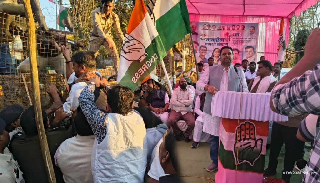 जशपुरनगर: महात्मा गांधी राष्ट्रीय ग्रामीण रोजगार गारंटी योजना (मनरेगा) में केंद्र सरकार द्वारा किए गए हालिया बदलावों के खिलाफ शुक्रवार को जशपुर की सड़कों पर सियासी पारा चढ़ गया। कांग्रेस कार्यकर्ताओं ने केंद्र सरकार की नीतियों को ‘गरीब विरोधी’ करार देते हुए भारी संख्या में कलेक्टर कार्यालय का घेराव करने की कोशिश की। हालांकि, प्रशासन की सख्त घेराबंदी और पुलिस के लगाए गए बैरिकेड्स ने प्रदर्शनकारियों का रास्ता रोक लिया, जिसके चलते कार्यकर्ताओं और पुलिस जवानों के बीच तीखी झूमा-झटकी भी देखने को मिली।