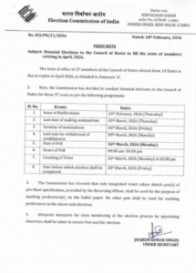 निर्वाचन आयोग ने देश के 10 राज्यों की 37 राज्यसभा सीटों के लिए द्विवार्षिक चुनावों के बिगुल फूंक दिया है। इन सीटों पर प्रतिनिधित्व कर रहे सदस्यों का कार्यकाल अप्रैल 2026 में समाप्त हो रहा है, जिसे देखते हुए आयोग ने मतदान और मतगणना की पूरी रूपरेखा तैयार कर ली है। चुनावी कार्यक्रम के अनुसार, 26 फरवरी 2026 को आधिकारिक अधिसूचना जारी की जाएगी, जिसके साथ ही नामांकन की प्रक्रिया शुरू हो जाएगी। उम्मीदवारों के लिए नामांकन दाखिल करने की अंतिम तिथि 5 मार्च तय की गई है, जबकि नामांकनों की जांच 6 मार्च को की जाएगी। यदि कोई उम्मीदवार अपना नाम वापस लेना चाहता है, तो उसके लिए 9 मार्च तक का समय निर्धारित किया गया है।
