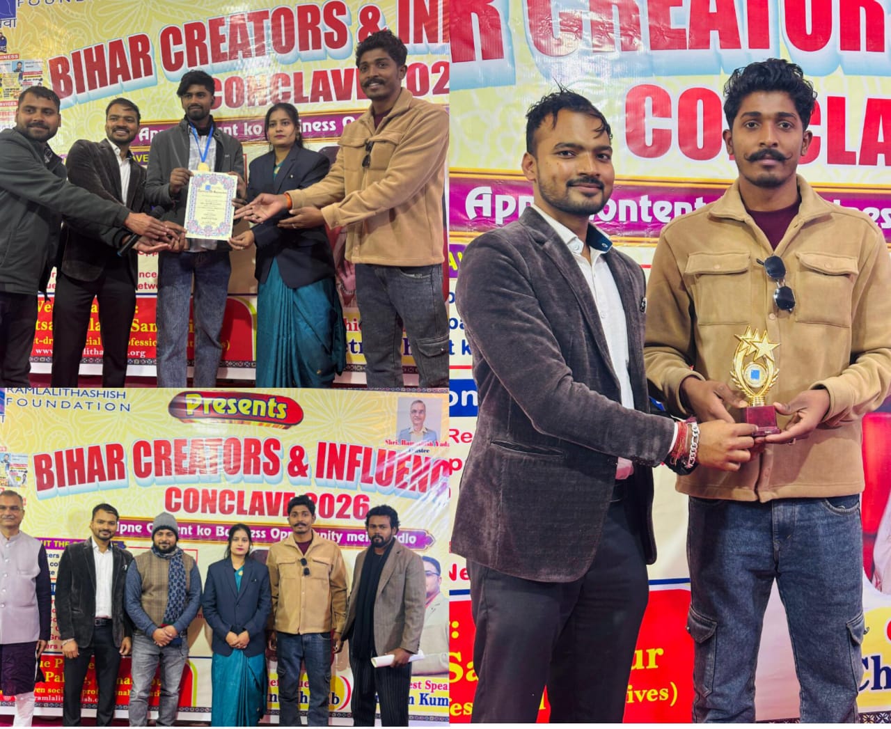 समस्तीपुर: Ramlalithashish Foundation द्वारा आयोजित Bihar Creators & Influencer Conclave 2026 का भव्य सफल आयोजन समस्तीपुर के हिमगिरी प्लेस (Himgiri Place) में किया गया। इस कॉन्क्लेव के संस्थापक अनिल कुमार यादव हैं, जिनकी पहल पर यह मंच बिहार के उभरते डिजिटल क्रिएटर और इंफ्लुएंसर के लिए एक मजबूत प्लेटफॉर्म बनकर उभरा है। कार्यक्रम का मुख्य उद्देश्य युवाओं को सही दिशा में मार्गदर्शन देना, उन्हें प्रेरित करना और एक साझा मंच प्रदान करना रहा।