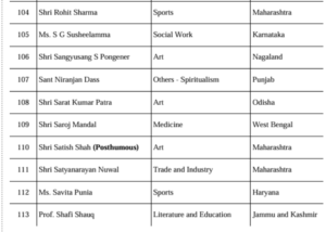 खेल जगत से रोहित शर्मा और हरमनप्रीत कौर को पद्म श्री से सम्मानित किया जाएगा। इसके अलावा देश के अलग-अलग कोनों से आए कई ऐसे लोगों को भी पद्म श्री दिया गया है, जिन्होंने बिना किसी पहचान के समाज सेवा में जीवन लगा दिया। कर्नाटक के अंके गौड़ा, जिन्होंने दुनिया का सबसे बड़ा निशुल्क पुस्तकालय स्थापित किया, और मुंबई की बाल रोग विशेषज्ञ आर्मिडा फर्नांडिस, जिन्होंने एशिया का पहला मानव दूध बैंक शुरू किया, को “गुमनाम नायकों” की श्रेणी में सम्मानित किया गया है। छत्तीसगढ़ की बुदरी थाटी और रामचंद्र गोडबोले-सुनीता गोडबोले का नाम भी इस सूची में शामिल है।