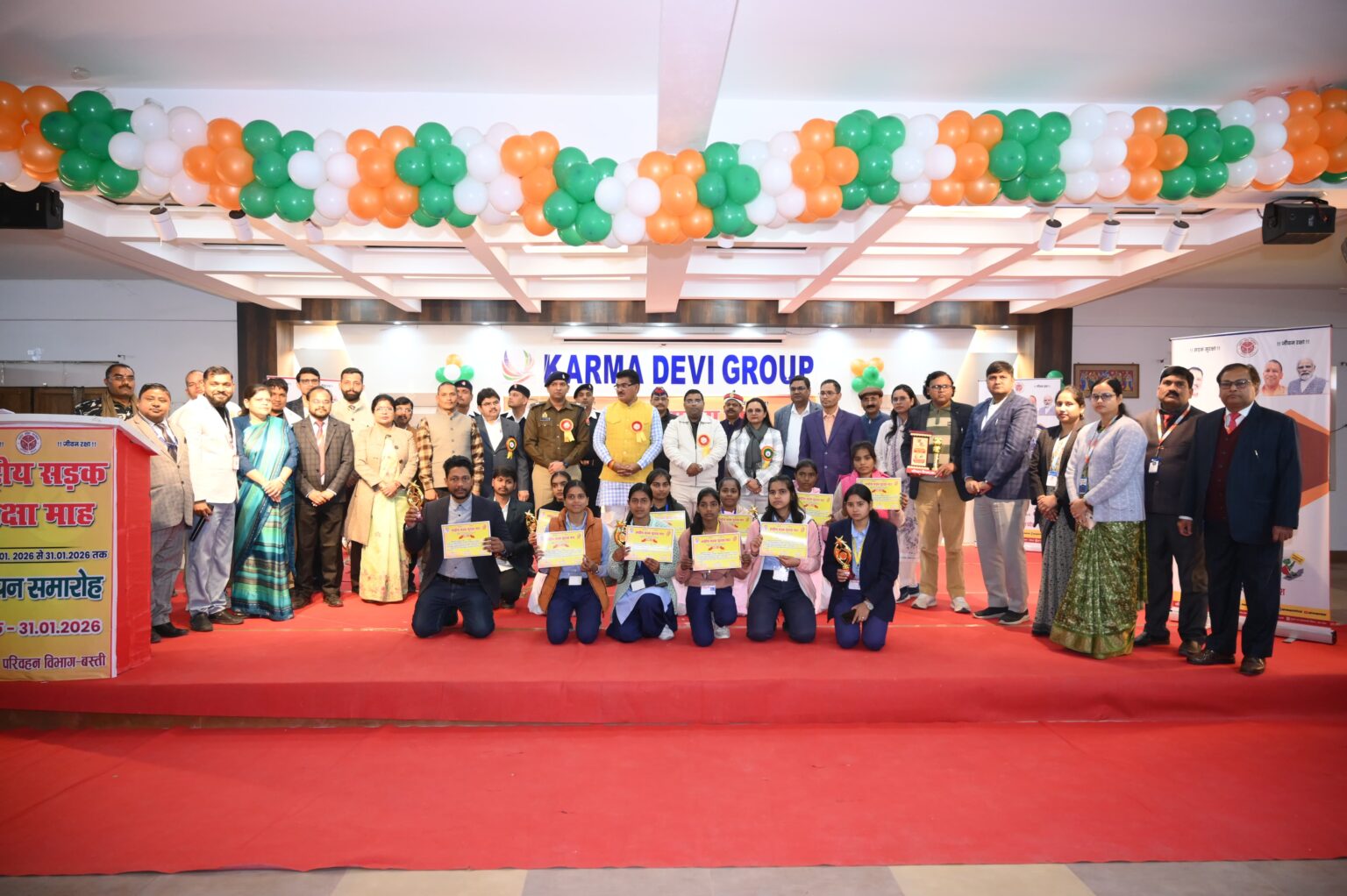अभिषेक पाण्डेय, बस्ती। मुख्य सचिव, उत्तर प्रदेश शासन के पत्र संख्या 3032/तीस-3-2025 दिनांक 31 दिसंबर 2025 के निर्देशानुसार प्रदेश भर में 01 जनवरी से 31 जनवरी 2026 तक राष्ट्रीय सड़क सुरक्षा माह मनाया गया। इसी क्रम में शुक्रवार को कर्मा देवी शैक्षणिक संस्थान, बस्ती के भव्य प्रेक्षागृह में सड़क सुरक्षा माह के समापन समारोह का आयोजन किया गया। कार्यक्रम में जनप्रतिनिधियों, प्रशासनिक अधिकारियों, परिवहन विभाग, पुलिस प्रशासन, विभिन्न विभागों के प्रतिनिधियों, शिक्षकों एवं बड़ी संख्या में छात्र-छात्राओं की सहभागिता रही।