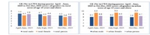 कार्यबल में महिलाओं का बढ़ता कदम रिपोर्ट के सबसे महत्वपूर्ण पहलुओं में से एक महिला श्रम बल सहभागिता दर में हुई वृद्धि है। 15 वर्ष और उससे अधिक आयु की महिलाओं की भागीदारी जुलाई-सितंबर 2025 के 33.7% से बढ़कर अक्टूबर-दिसंबर 2025 में 34.9% तक पहुँच गई है। इस वृद्धि का मुख्य केंद्र ग्रामीण क्षेत्र रहा है, जहाँ महिलाओं की भागीदारी 37.5% से बढ़कर 39.4% हो गई। यह आंकड़ा ग्रामीण भारत में महिलाओं के आर्थिक सशक्तिकरण की एक मजबूत तस्वीर पेश करता है।