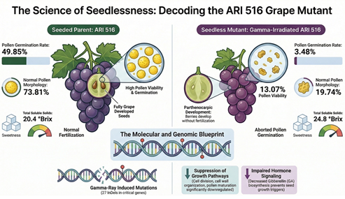वैज्ञानिकों ने इस गुत्थी को सुलझाने के लिए अंगूरों का ‘होल-जीनोम सीक्वेंसिंग’ (DNA की पूरी कुंडली) खंगाली। उन्हें पता चला कि कुछ खास जींस में ‘म्यूटेशन’ यानी आनुवंशिक बदलाव हुए हैं। ये वही जींस हैं जो सेल डिवीजन और हार्मोन सिग्नलिंग का काम संभालते हैं। इन जींस की सुस्ती की वजह से ही बीज बनने का रास्ता बंद हो जाता है।