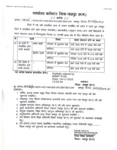 जिले में लगातार बढ़ रही ठंड और शीतलहर को देखते हुए कलेक्टर रोहित व्यास ने छात्रों की सुरक्षा और स्वास्थ्य को प्राथमिकता देते हुए जशपुर जिले के सभी शासकीय, अशासकीय, अनुदान प्राप्त एवं अन्य सभी स्कूलों के समय में बदलाव किया है। यह संशोधित समय-सारणी तत्काल प्रभाव से लागू होकर 31 जनवरी 2026 तक प्रभावी रहेगी।