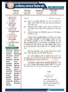 रायपुर, 31 अक्टूबर 2025/ छत्तीसगढ़ राज्य स्थापना दिवस एवं प्रदेश के 25वें वर्षगांठ के अवसर पर देश के माननीय, यशस्वी प्रधानमंत्री श्री नरेंद्र मोदी के छत्तीसगढ़ आगमन पर “छत्तीसगढ़ जागरूक शिक्षक संघ” ने उनका स्वागत, वंदन एवं हार्दिक अभिनंदन करते हुए एक खुला प्रार्थना/निवेदन/आग्रह पत्र जारी किया है।