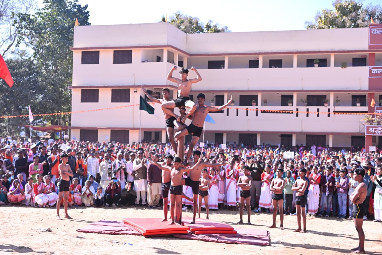 समारोह के दौरान लोक कला संगम के अंतर्गत 150 से अधिक नर्तक दलों द्वारा प्रस्तुत जनजातीय लोकनृत्य और मलखंभ प्रदर्शन आकर्षण का केंद्र रहे। सांस्कृतिक प्रतियोगिता में 8 से 18 वर्ष आयु वर्ग में शबनम बाई ने प्रथम, संदीप ने द्वितीय और ओंकार राम भगत ने तृतीय स्थान प्राप्त किया। वहीं 18 वर्ष से अधिक आयु वर्ग में श्री कैलाश चौहान प्रथम, श्रीमती गुंजी भगत द्वितीय और श्रीमती कमला बाई तृतीय स्थान पर रहीं।कार्यक्रम का समापन राष्ट्रभक्ति और जनजातीय संस्कृति के संरक्षण के संकल्प के साथ किया गया।