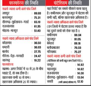 और मोहला–मानपुर में 51.40 प्रतिशत तक फास्फोरस की कमी दर्ज की गई है।