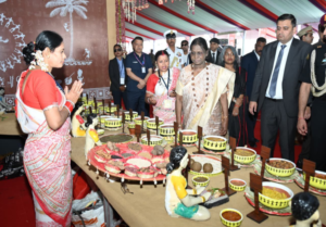 कार्यक्रम स्थल पर राष्ट्रपति ने जनजातीय हस्तशिल्प और संस्कृति पर आधारित भव्य प्रदर्शनी का भी अवलोकन किया। उन्होंने ढोकरा शिल्प, टेराकोटा, लकड़ी की नक्काशी, बांस कला, लौह शिल्प, जनजातीय आभूषण, पारंपरिक वेशभूषा, चित्रकला और स्थानीय व्यंजनों की सराहना की। बस्तर की समृद्ध कला और कौशल ने उन्हें विशेष रूप से प्रभावित किया।