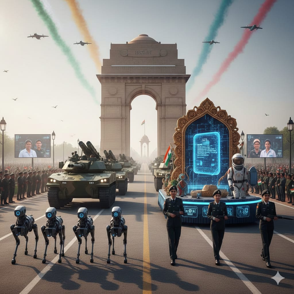 ​आजादी के 79वें वर्ष में प्रवेश करते हुए, इस बार भारतीय संविधान के ‘डिजिटल संस्करण’ का औपचारिक विमोचन किया गया। इसके साथ ही, कई झांकियां ब्लॉकचेन तकनीक, क्वांटम कंप्यूटिंग और अंतरिक्ष अन्वेषण जैसे भविष्य के विषयों पर आधारित थीं। एक झांकी ने मंगल ग्रह पर भारत के प्रस्तावित मानव मिशन की एक अद्भुत परिकल्पना प्रस्तुत की, जिसे देखकर लगा कि भारत अब सिर्फ धरती पर नहीं, बल्कि ब्रह्मांड में भी अपनी छाप छोड़ने को तैयार है।