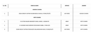 इस अवसर पर भारतीय वायु सेना के ग्रुप कैप्टन और भारतीय अंतरिक्ष यात्री शुभांशु शुक्ला को भारत के सर्वोच्च शांतिकालीन वीरता पुरस्कार अशोक चक्र से सम्मानित किए जाने का ऐलान किया गया है। शुभांशु शुक्ला ने पिछले वर्ष जून में ‘एक्सियम-4 (Axiom-4)’ मिशन के तहत अंतरराष्ट्रीय अंतरिक्ष स्टेशन की ऐतिहासिक यात्रा की थी। वे 18 दिनों तक आईएसएस पर रहे, जो भारत के महत्वाकांक्षी गगनयान मिशन के लिए भी अत्यंत महत्वपूर्ण माना जा रहा है।
