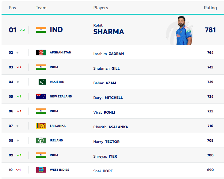 ऑस्ट्रेलिया के खिलाफ वनडे सीरीज में Rohit Sharma ने बेहतरीन फॉर्म दिखाई। उन्होंने सीरीज के आखिरी मुकाबले में शानदार शतक जड़ा और भारत को जीत दिलाई। पूरी सीरीज में उन्होंने 101 की औसत से 202 रन बनाए, जिससे उनका नाम ICC चार्ट के शीर्ष पर पहुंच गया।