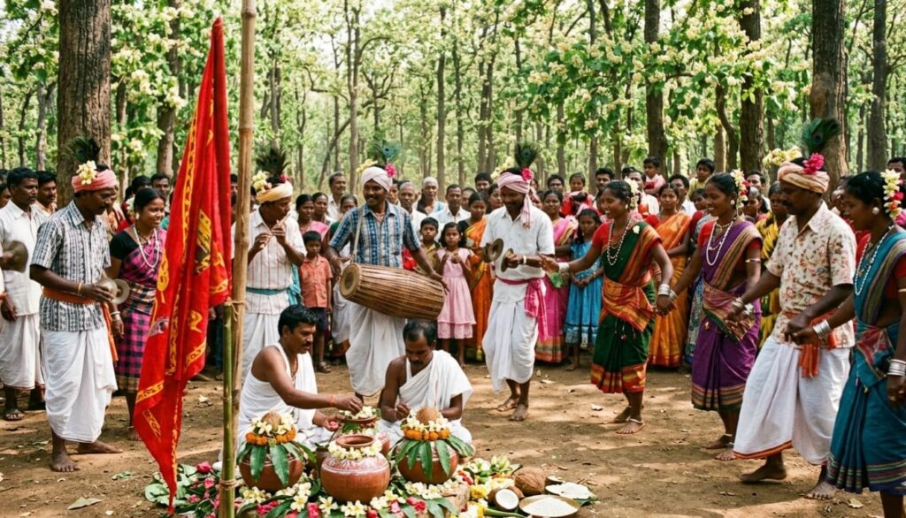 जनजातीय समाज में साल के वृक्ष को अत्यंत पवित्र माना जाता है क्योंकि मान्यता है कि उनके आराध्य देव ‘सिंगबोंगा’ या ‘धर्मेश’ का निवास इन्हीं पावन कुंजों यानी ‘सरना’ स्थलों में होता है। इसलिए, नए साल की शुरुआत में इन पेड़ों की पूजा कर प्रकृति को धन्यवाद दिया जाता है।