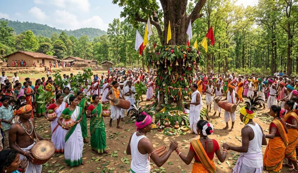 इस पर्व की सबसे पवित्र रस्म गांव के ‘सरना स्थल’ पर संपन्न होती है, जिसे आदिवासियों का सबसे पावन पूजा स्थल माना जाता है। यहाँ गांव के पुजारी, जिन्हें ‘बैगा’ या ‘पहन’ कहा जाता है, साल वृक्ष की विधिवत पूजा करते हैं। आदिवासियों की मान्यता है कि साल के वृक्ष में ही उनकी ‘सरना देवी’ का निवास है, जो पूरे गांव की रक्षा करती हैं और उन्हें सुख-समृद्धि का आशीर्वाद देती हैं। पूजा के दौरान सखुआ के नए फूलों का अर्पण सबसे अनिवार्य होता है, और यह परंपरा इतनी कड़ी है कि जब तक सरना देवी को ये फूल और नई फसल नहीं चढ़ाई जाती, तब तक कोई भी ग्रामीण नए फल या फूलों का स्पर्श तक नहीं करता। यह प्रकृति के प्रति उनके गहरे सम्मान और अनुशासन को दर्शाता है।