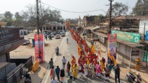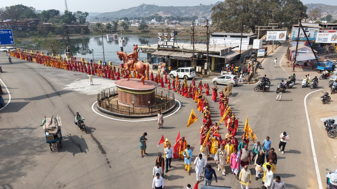जशपुरनगर :- विशाल कलश यात्रा के साथ ही सात दिवसीय संगीतमय भागवत कथा का भव्य शुभारंभ हुआ। कथा का यह आयोजन 11 फरवरी तक चलेगा। श्रद्वालुओं को कथा का रसपान कराने वृद्वावन के प्रसिद्व कथावाचक करूणा शंकर महाराज जशपुर पहुंचे हैं। कलश यात्रा में शामिल होने के लिए शहर और इसके आसपास के ग्रामीण अंचल से श्रद्वालु महिला पीले वस्त्र धारण कर पहुंची थी।