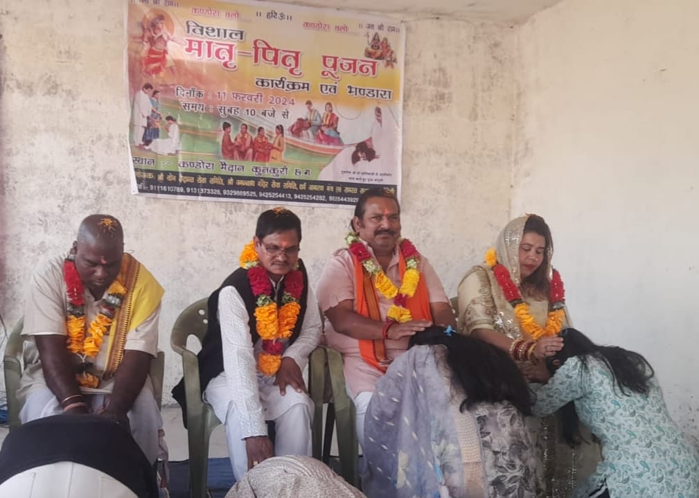 जशपुरनगर (कस्तूरा) :- भारतीय संस्कृति में माता-पिता के सम्मान और संस्कार जागरण के उद्देश्य से आयोजित मातृ-पितृ पूजन कार्यक्रम रविवार को कस्तूरा स्थित श्री जगन्नाथ मंदिर प्रांगण में अत्यंत भावपूर्ण वातावरण में सम्पन्न हुआ। कार्यक्रम में लगभग 300 माता-पिता एवं बच्चों ने भाग लेकर अपने माता-पिता का पूजन कर आशीर्वाद प्राप्त किया।