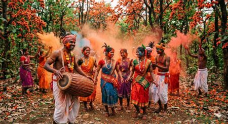 छत्तीसगढ़ में नक्सलवाद के मोर्चे पर बड़ी सफलता: 6 साल में 4,340 नक्सलियों का सरेंडर, मुठभेड़ में 666 ढेर; एके-47 और एक्स-95 जैसे भारी मात्रा में आधुनिक हथियार जब्त जशपुर। छत्तीसगढ़ के आदिवासी बहुल जिले जशपुर में इस वर्ष भी होली का उल्लास अपनी प्राचीन जड़ों की ओर लौटता दिखाई दे रहा है। जहाँ आधुनिकता … Continue reading विरासत की थाप: मांदर की गूँज और धवई के रंगों के साथ जीवंत आदिवासी संस्कृति’ ,जंगलों में आज भी पलाश की खुशबू से महकती है आदिवासियों की असली होली