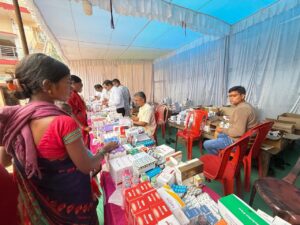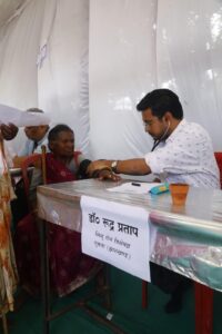 दवा वितरण में डॉ. बी.एन. द्विवेदी (राजपुर) का विशेष योगदान रहा, जबकि डॉ. शिवकुमार (घाघरा) द्वारा रक्त शर्करा एवं अन्य परीक्षण किए गए।