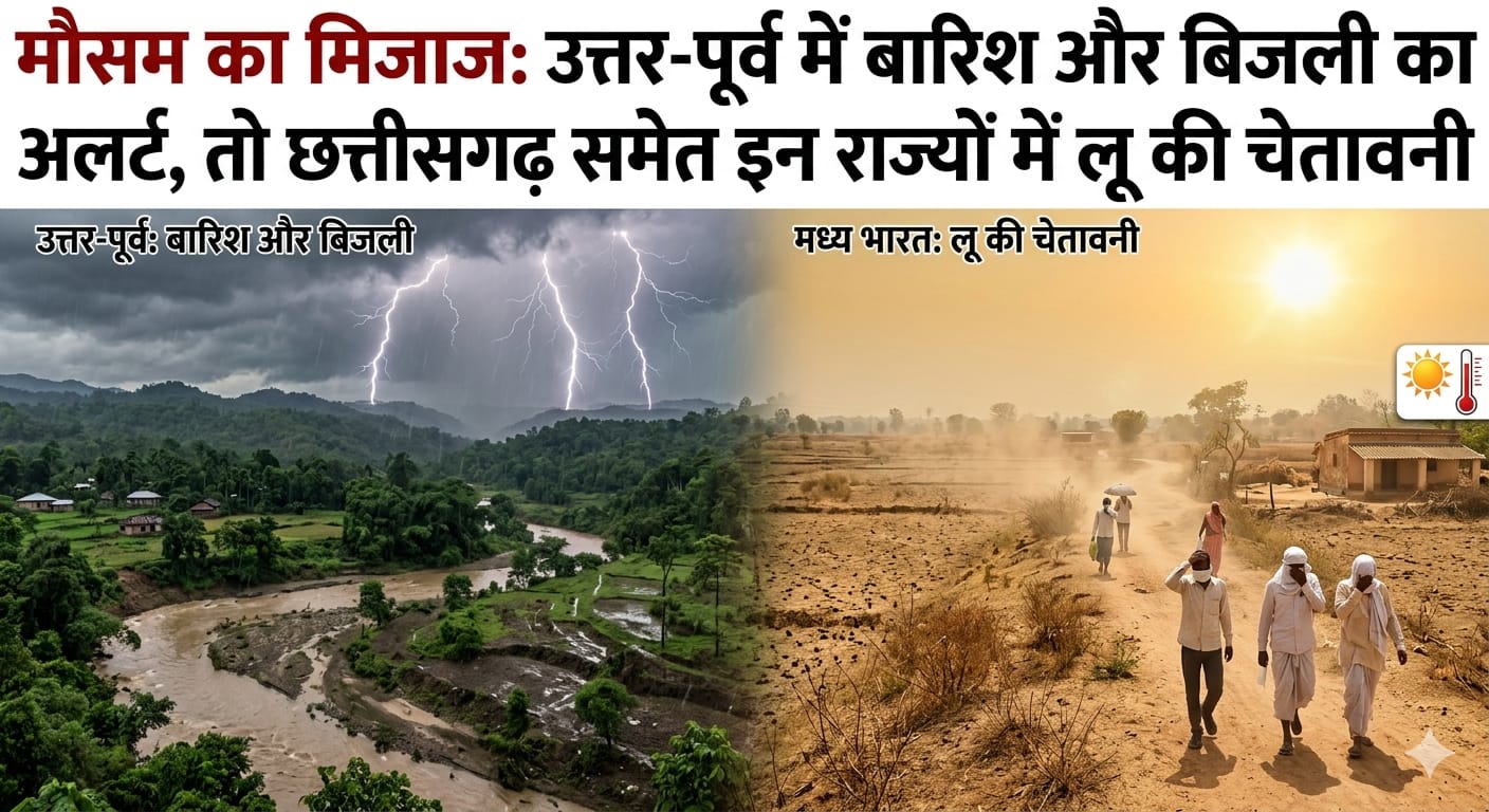 भारतीय मौसम विभाग द्वारा जारी ताजा प्रेस रिलीज के अनुसार, देश के अलग-अलग हिस्सों में अगले कुछ दिनों तक मौसम के विविध रूप देखने को मिलेंगे। उत्तर-पूर्वी राज्यों में मौसम के मिजाज में नरमी के साथ बारिश की संभावना जताई गई है, जहाँ असम और मेघालय में 12 से 14 अप्रैल के दौरान गरज-चमक के साथ हल्की से मध्यम बारिश हो सकती है। इस दौरान इन क्षेत्रों में 30 से 50 किलोमीटर प्रति घंटे की रफ्तार से तेज हवाएं चलने का भी अनुमान है। साथ ही, 12 से 15 अप्रैल के बीच अरुणाचल प्रदेश, नागालैंड, मणिपुर, मिजोरम और त्रिपुरा जैसे राज्यों में बिजली गिरने की आशंका बनी हुई है, जिससे स्थानीय जनजीवन प्रभावित हो सकता है।